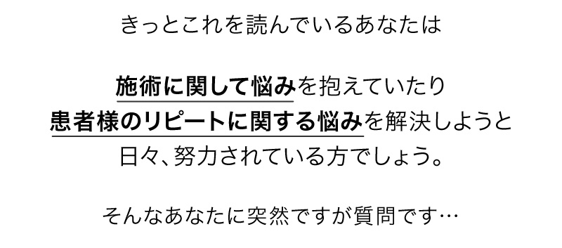 治療院経営をされている先生の、ほとんどの悩みは“ 新規集客 ”と“ リピート ”です。