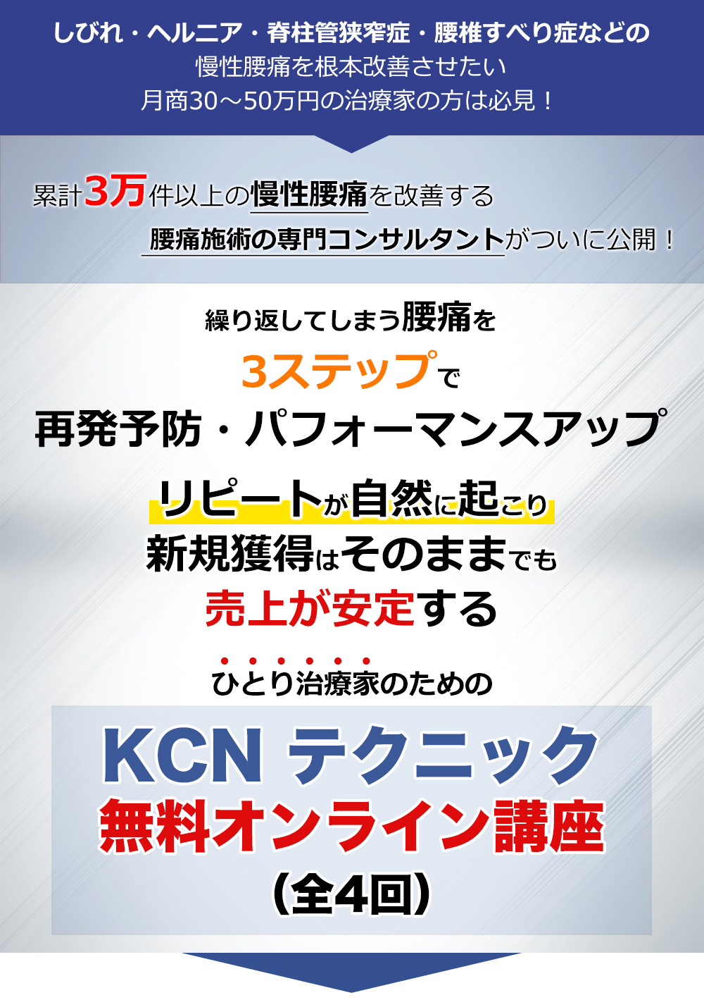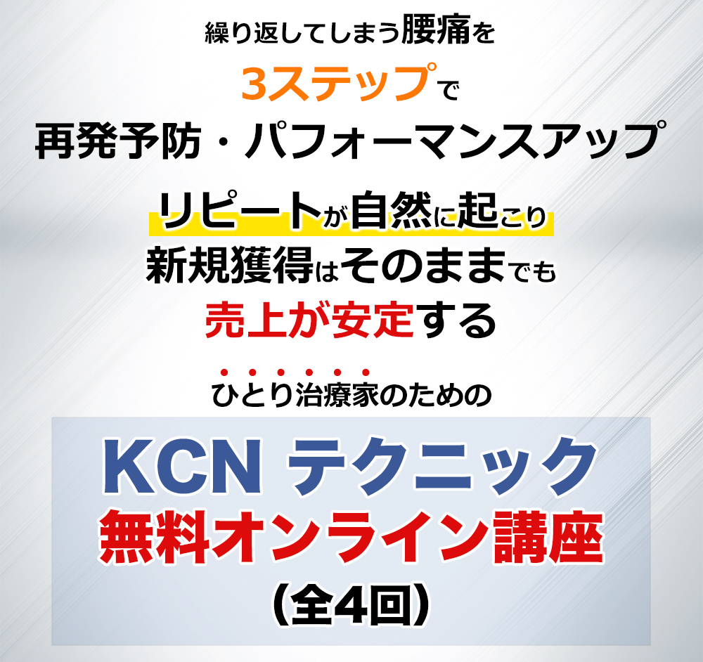 そして今回、少しでも多くの治療家さんにこの「KCN テクニック」をお伝えするため無料オンライン講座を公開することにしたのです。